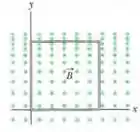 Na Fig. 30-53, uma espira quadrada com de lado é submetida a um campo magnético, dirigido para fora do papel, cujo módulo é dado por , onde está em teslas, em segundos e em metros. Determine (a) o valor absoluto e (b) o sentido da força eletromotriz induzida na espira no instante .