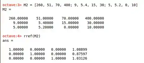 para fazer isso no matlab r Octave, usamos a função rref():