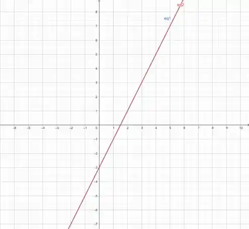 Olhando para o gráfico vemos que ambas as linhas são as mesmas e, portanto, o sistema tem infinitamente muitas soluções.