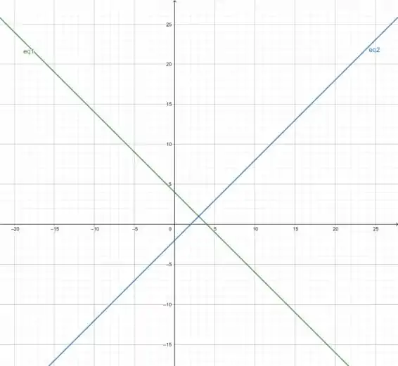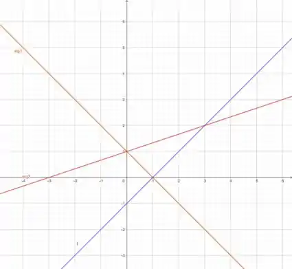 Olhando para os gráficos das linhas temos que o sistema tem apenas uma solução desde que as linhas interceptam em um único ponto.