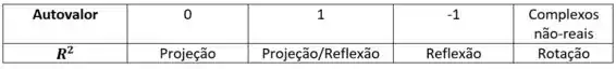 - Se o autovalor é 1, já pode marcar aí que se trata de projeção e reflexão, respectivamente, P e R.
