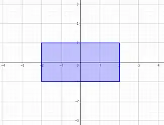- A equação dada apresenta duas restrições de e , que correspondem, respectivamente, aos intervalos e , logo todos os valores contidos nas bordas e dentro do retângulo formado pela intercepção desses dois intervalos satisfazem a condição, como mostra a figura abaixo