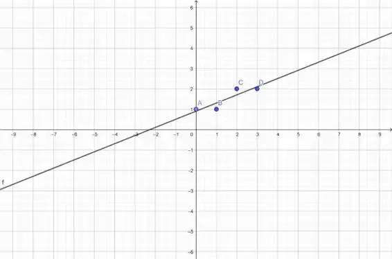 O que nos oferece a solução e . Logo, a reta é a que mais ajusta os pontos e .