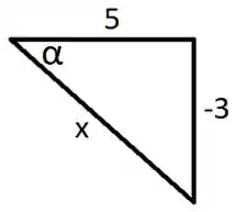 Com isso, para encontrar o valor de temos que calcular a hipotenusa (pelo teorema de Pitágoras) e dividir pelo lado adjacente, isto é,