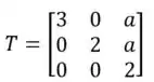 T(x,y,z) = (3x+az , 2y+az , 2z)