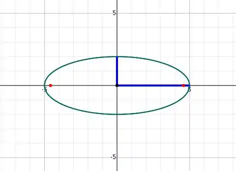 - Observando a elipse , dá pra gente notar que . Então, os focos estão no eixo . Além disso,
