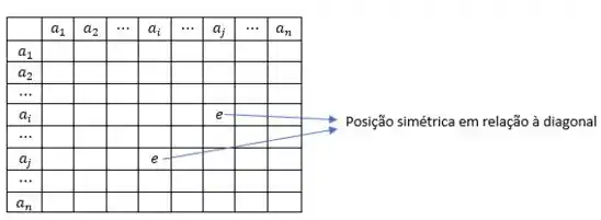 Para operação com dois elementos simetrizáveis e não simetrizáveis devemos saber que a tabela de elementos e representada por,