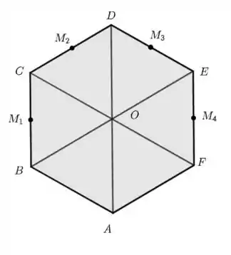 No hexágono regular , e são pontos médios dos lados onde se situam. Escreva em função de .