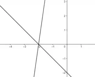 Portanto, vemos que temos a reunião de duas retas: e . No sistema original (antes da translação), podemos verificar que as retas se encontram em , conforme mostra a figura abaixo.