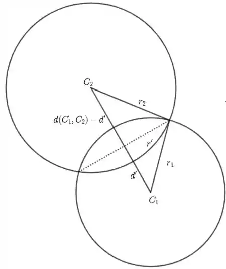 - Para calcular o centro da circunferência e seu raio. A figura abaixo ilustra mais ou menos o que está acontecendo