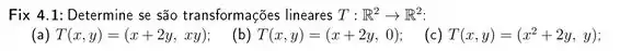 Assim, sempre que as igualdades forem verdadeiras, a função será uma transformação linear.