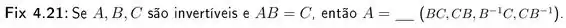 Ok, o primeiro passo é perceber que A, B e C são invertíveis e , se considerarmos C uma matriz identidade é possível dizer que, se, e somente se, se, e somente se, . Escalonando B temos a seguinte afirmação:
