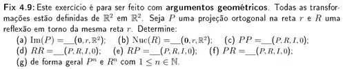 g) essa questão é uma boa pegadinha, pois temos mais de uma resposta, olha só, o comando nos dá uma projeção ortogonal e uma reflexão , sendo n um subespaço qualquer , assim temos: