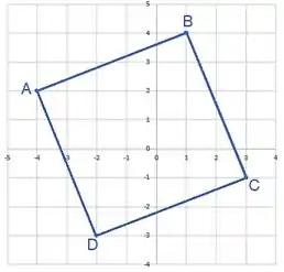 Primeiramente, vamos marcar os pontos A, B, C e D no plano coordenado e esboçar o quadrado como mostra a figura abaixo