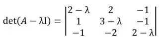 Desenvolvendo a equação, nós temos que , , . Portanto, por ter 3 autovalores em uma matriz 3x3 de dimensão 3, podemos dizer que a matriz é de fato diagonalizável !