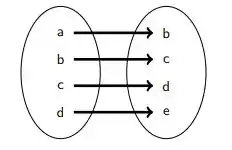 E por fim na letra (d) realizando o esquema de flechas para R ficamos,