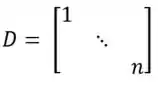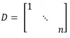 Portanto, pode ser escrito como as colunas de P são autovetores de A com autovalores k na diagonal de D. Essa questão específica pede que escrevemos a matriz diagonal, no caso se refere a matriz D, até aqui beleza, né? Então, nós sabemos que os autovalores de D são k e, de acordo com o comando, k=1, ..., n. Logo a matriz D, pode ser escrita como: