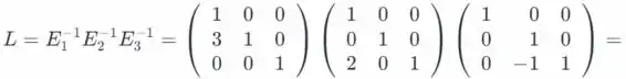 (b) Determine as inversas de = . Que tipo de matriz é L? Verifique que A = LU.