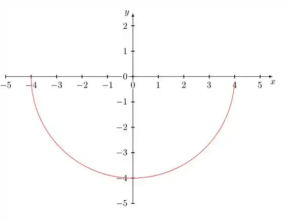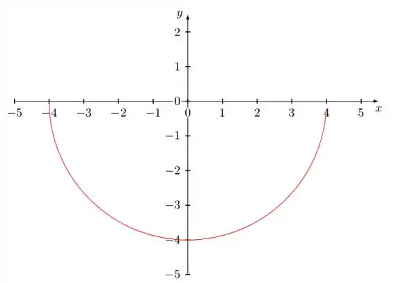 Esta é a equação de uma circunferência com centro na origem e raio 4. Mas como só temos a parte de baixo, o gráfico será: