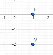 Primeiro vamos calcular o parâmetro desta parábola, onde é a distância entre o Foco e o Vértice.