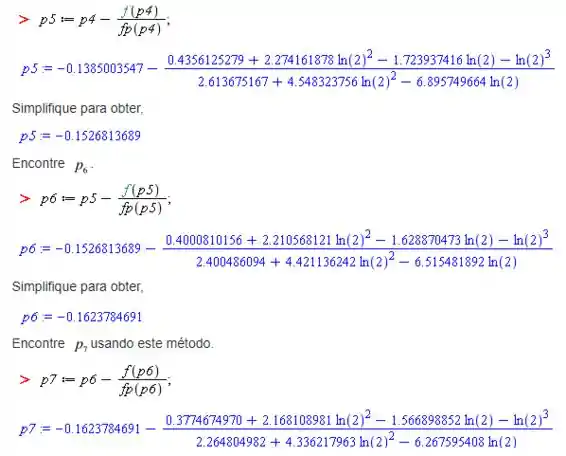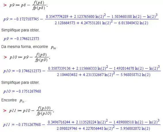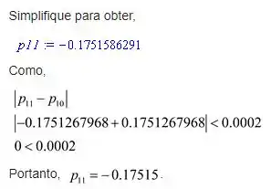 Sendo assim, o método de Newton dá , e pelo método de Aitken , o valor melhorado pe .