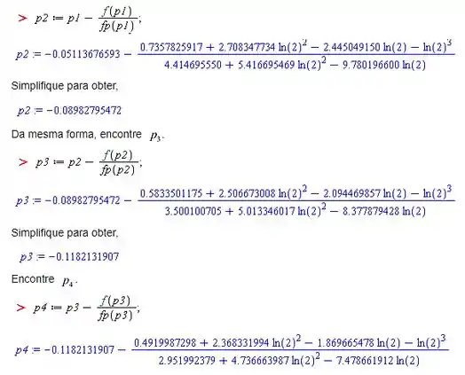No Maple é usado para encontrar a primeira iteração de método de Newton com