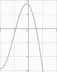 Na figura abaixo, vemos o gráfico de . Em uma análise visual, é possível verificar que a função também é derivável no intervalo dado. De fato, sua lei de formação está definida para todos os pontos do intervalos e não apresenta nenhum salto.