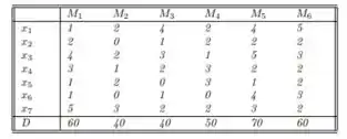 Nessa questão do livro de cálculo numérico de Franco e Neide se representarmos por o número das unidades de n produtos que podem ser produzidos no decorrer de uma semana. Para produção de cada unidade precisa-se de m tipos diferentes de matéria prima . Tais relações são dadas através de uma matriz onde indica quantas unidades da matéria prima são necessárias para produzir uma unidade do produto . Suponha que existam unidades respectivamente de matérias primas . Nosso problema é determinar quantas unidades de cada produto podemos produzir. Lembre-se que tais quantidades devem ser inteiras e não negativas. Considere os dados da Tabela abaixo.