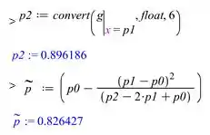 Usando o método de Steffensen para encontrar usando a tecnologia Maple, conforme mostrado a seguir: