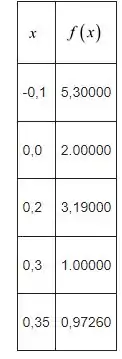 - Adicione à tabela e construa o polinômio interpolador de grau quatro.