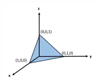 No nosso primeiro exemplo a gente só quer a parte do plano no primeiro octante. A gente consegue impor isso se estiverem dentro desse triângulo aqui:
