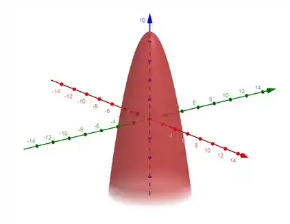 que representa um paraboloide elíptico com concavidade para baixo com vértice localizado no ponto (). Como ele está definido em , podemos esboçar o desenho dele da seguinte forma.