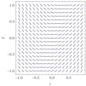 (b) Com base em uma análise do campo de direções, descreva o comportamento das soluções para valores grandes de t.
