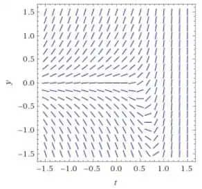 (b) Com base em uma análise do campo de direções, descreva o comportamento das soluções para valores grandes de t.