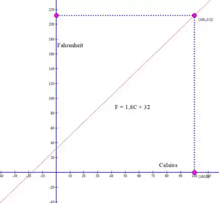 Então, a cada 1 grau Celsius de variação, teremos uma variação de 1,8 graus Farenheit, e iniciando do 0 em Celsius, partiremos do 32 em Fahrenheit. Portanto: