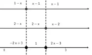 Agora vamos juntar as duas representações! Como nossa função é um módulo mais o outro, podemos usar a reta real pra nos ajudar a ver o resultado: