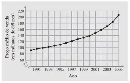 Construção Nos Exercícios 31 e 32, utilize a figura que mostra os preços médios de venda de imóveis (casa ou apartamento) (em milhares de dólares) nos Estados Unidos de 1990 a 2005. (Fonte: National Association of Realtors)