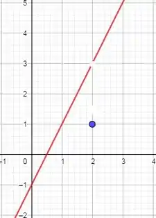 Para a letra b calculamos a função para os valores de diferentes de 2, e neste ponto a função assumirá o valor 1.