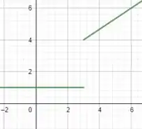 A primeira característica que a função tem que ter é ter os limites laterais quando diferentes, ou seja, quando pela direita tem que ser diferente quando pela esquerda, então podemos pegar uma função constante qualquer, tal como: