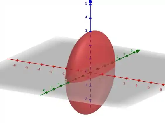 A equação dada representa o elipsóide de revolução (esferóide) com seções transversais circulares ao longo do eixo x, centrado na origem e com semi-eixos de 1 ao longo do eixo x, 3 ao longo do eixo y e 3 ao longo do eixo z. Utilizando de um software gráfico, obtemos a seguinte superfície