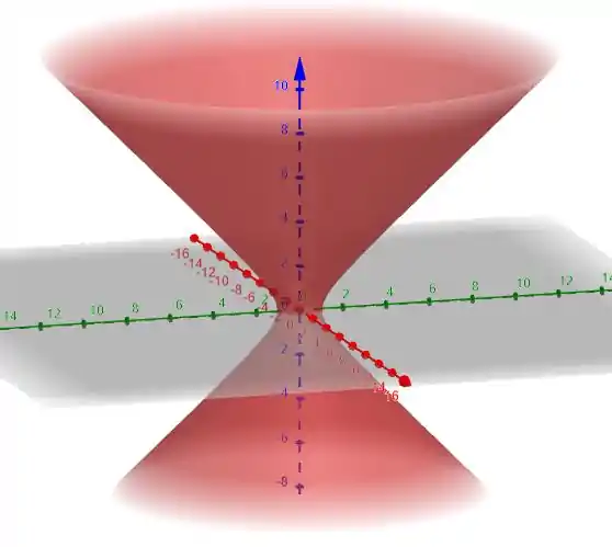 A partir da discussão acima, a equação dada representa um hiperboloide circular reto de uma folha, ao longo do eixo z e interceptando com o plano e em duas hiperboloides e respectivamente. Portanto, temos o seguinte gráfico