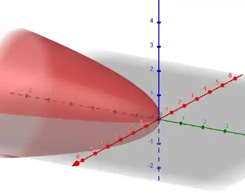 Da discussão acima, a equação dada representa um paraboloide circular reto, cujo vértice está em (0,0,0) e tendo as duas parábolas e abrindo na direção de ao longo do eixo .