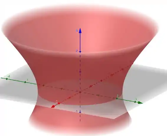 No plano , nós temos a hipérbole , para o plano , nós também temos a hipérbole e para o plano , nós temos o círculo . Em qualquer plano que seja perpendicular ao eixo , nós temos o círculo . A partir da discussão acima, a equação dada representa o hiperbolóide circular reto de uma folha, ao longo do eixo z e interceptando o plano e nos dois hiperbolóides e respectivamente.