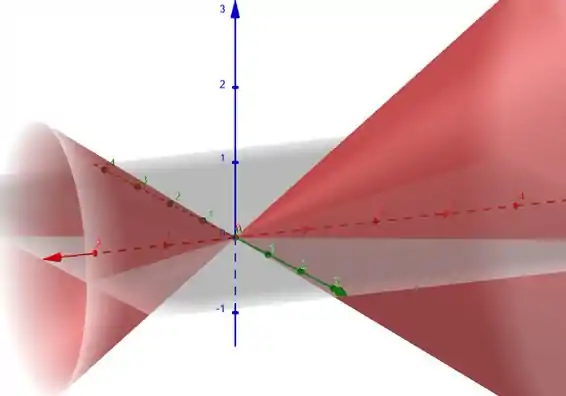 Note que quando estamos mexendo com o plano (colocando na equação), temos apenas a origem, portanto, a origem é o vértice do cone. Já no plano nós temos duas retas e no plano , nós também temos duas retas . Em qualquer plano perpendicular ao eixo (coloque na equação), temos a elipse