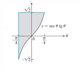 Para determinar a área da região sombreada de podemos observar que a região delimitada entre possui uma área retangular acima do eixo e que a parte inferior ao eixo é complementar a área de um retângulo do intervalo . Assim podemos considerar dois retângulos com lados medindo e , e respectivamente. Logo a área total é obtida pela adição dos valores absolutos :