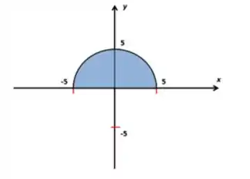 Vale notar que a equação representa o círculo centrado em e de raio . Porém, como , o domínio representa o semicírculo superior.