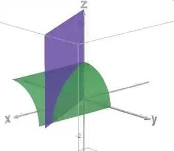 A superfície verde é o cilindro , restrito ao primeiro octante.