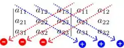 D = a 11 ⋅ a 22 ⋅ a 33 + a 12 ⋅ a 23 ⋅ a 31 + a 13 ⋅ a 21 ⋅ a 32