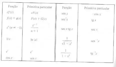Para isso, iremos utilizar a seguinte tabela de primitivação presente na seção .