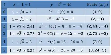 Vamos começar calculando as coordenadas para valores inteiros de no intervalo :